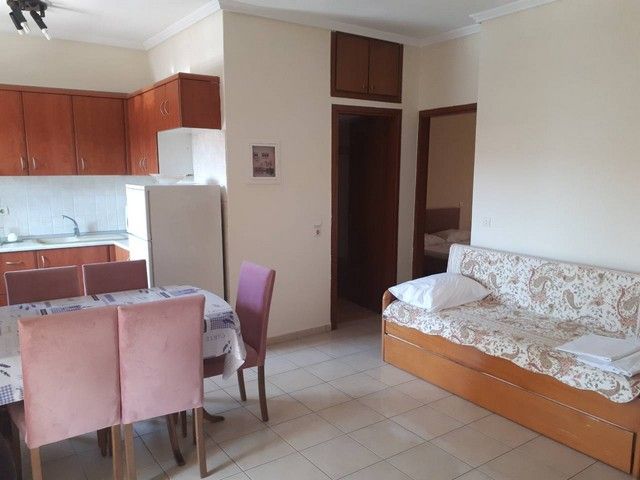 Апартман број 2 (1/4) – приземје, простран апартман од 40м². Има одвоена спална со брачен кревет и во дневната соба исто брачен кревет со стандардни димензии со одлична кујна со шанк и сите потребни елементи (мал фрижидер, плотна за готвење, кујнски прибор, електричен бокал за вода и сл.), маса со столови, ТВ и клима. Опремен е со квалитетен мебел, сопствен тоалет со када и сопствена помала тераса со маса и столови која има поглед кон дворот.