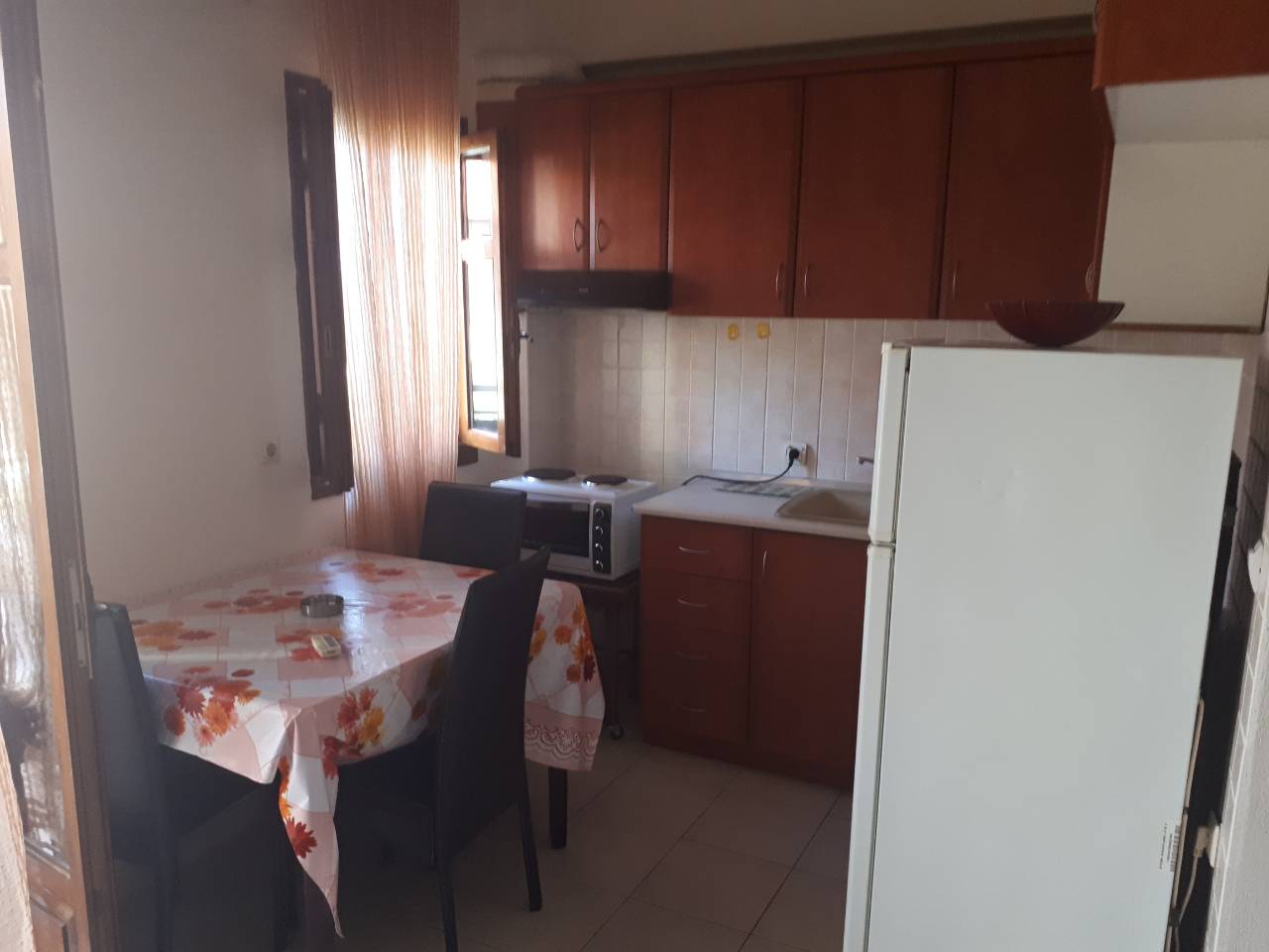 Полудуплекс апартман број 3 (1/4) – приземје, простран високо квалитетен полудуплекс апартман од 43м². Има две спални соби со стандардни брачни кревети, од кои едната е физички одвоена со врата, а другата спална е преградена, а споена со одлична кујна со сите потребни елементи (мал фрижидер, мал шпорет со рерна, кујнски прибор, електричен бокал за вода и сл.), простран реновиран тоалет со туш кабина, како и голема дневна соба, веднаш на влезот во апартманот. Располага со 2 брачни кревети во спалните и мала софа за дете до 7 години во дневна. Опремен е со квалитетен мебел. Има пространа тераса со маси и столови со поглед кон дворот.