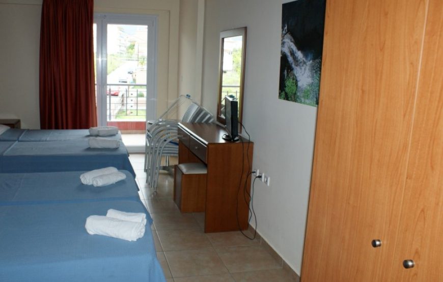 - Бр.104; ТРИКРЕВЕТНО (1/3) СТУДИО : 3 единечни кревети, комплетна кујна, ТВЦ, ТВ, тераса (запад – приземје, поглед кон Олимп);