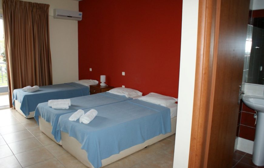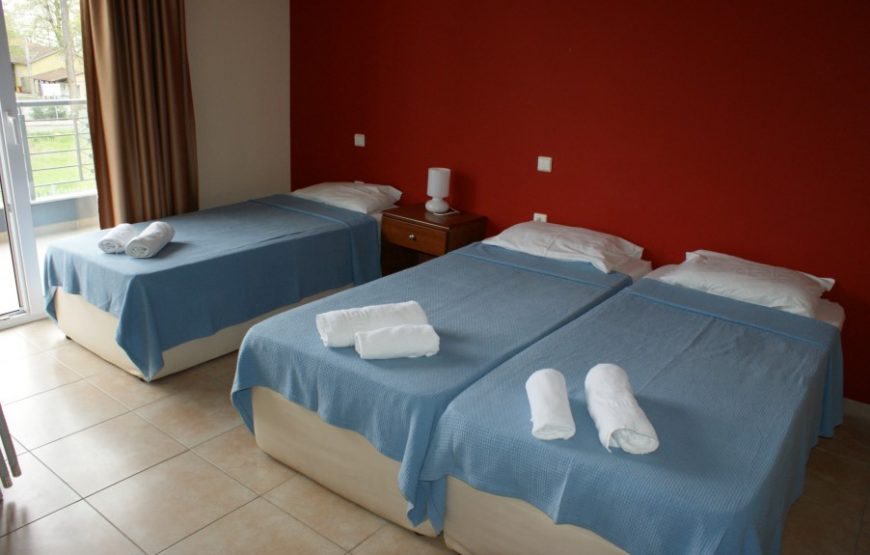 - Бр.109; ТРИКРЕВЕТНО (1/3) СТУДИО : 3 единечни кревети, комплетна кујна, ТВЦ, ТВ, тераса (исток – високо приземје, поглед на базен);