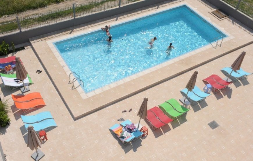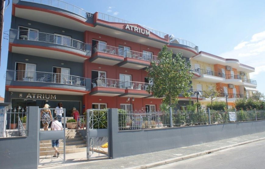 Вила ATRIUM „А“ категорија – се наоѓа на десната страна од местото, на само 200 м. од главната улица, и 100 м. од прекрасната песочна плажа. Секоја соба е опремена со модерно опремена кујна, ТВЦ, ТВ и КЛИМА (доплата од 6€ на ден). Во склопот на вилата има ЛИФТ и БАЗЕН, кои се на Ваше располагање…