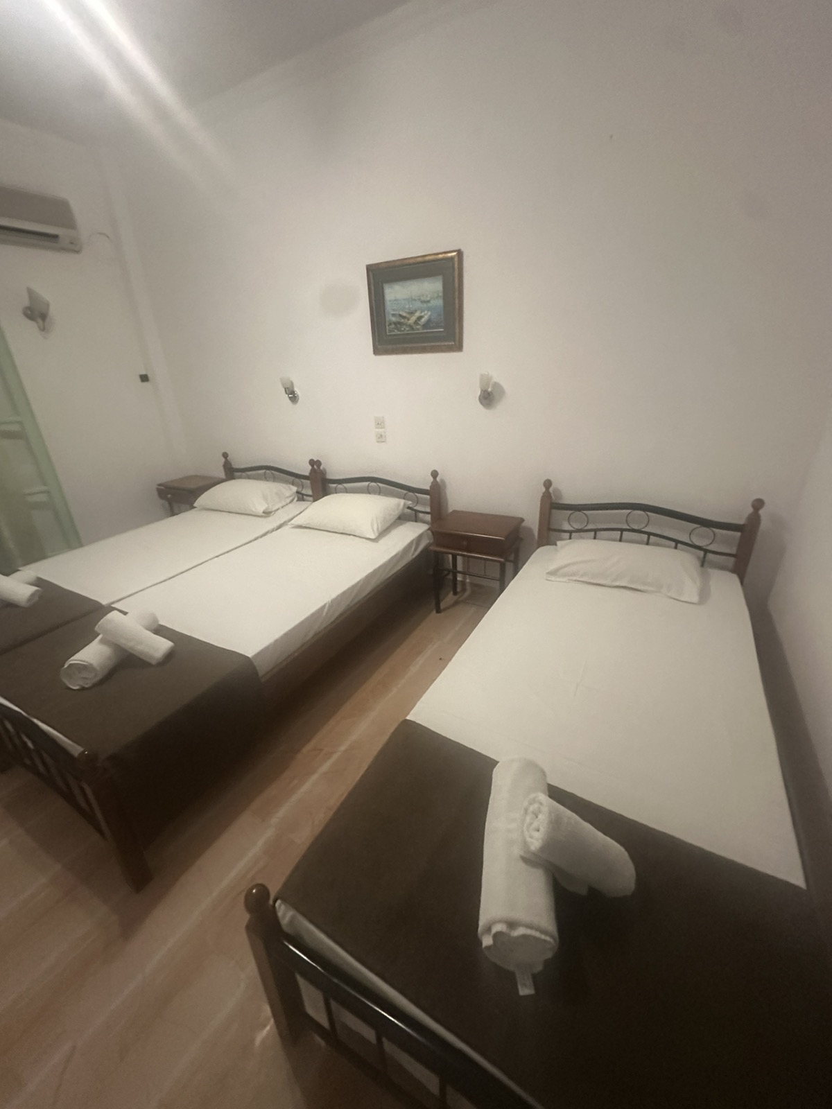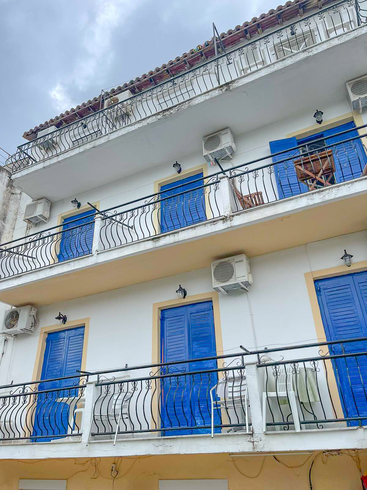 Вила Zoi 1 располага со  15 студиа, двокреветни, трокреветни  и четирикреветни на прв и втор спрат. Секое студио има тераса, сопствен тоалет, клима, фен, пешкири,мини фрижидер и мини решо за подготовка на лесна и брза храна (не е класична кујна). Вилата е во центарот на островот, и излегува на главната пешачка улица Пападијаманти.